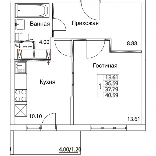Однокомнатная квартира 37.79 м² в ЖК «Мир Митино»